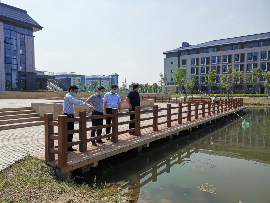 根据学校2020年防灾减灾救灾工作安排,结合《安徽科技学院保卫处中国足彩网做好2020年防灾减灾救灾工作的通知》(保卫〔2020〕8号)通知要求,为认真组织开展以防灾减灾救灾为主要内容的“防灾减灾救灾宣传周”活动,强化学校安全稳定。5月12、13日,校党委副书记、校长李震,校党委委员、副校长黄远友深入一线,带领龙湖校区综合管理办公室、保卫处、后勤保障部等部门开展校园防汛抗旱防台风专项大检查。