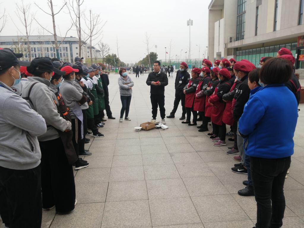 为切实加强进校服务单位的消防安全管理,普及从业人员消防安全知识、提升安全隐患排查能力和消防安全事故应急处置能力。3月18日-4月1日,学校保卫处在龙湖校区分三个批次分别对食堂三家进驻餐厅、安保、物业公司、超市、快递公司全员开展消防业务技能培训和疏散灭火演练系列活动。