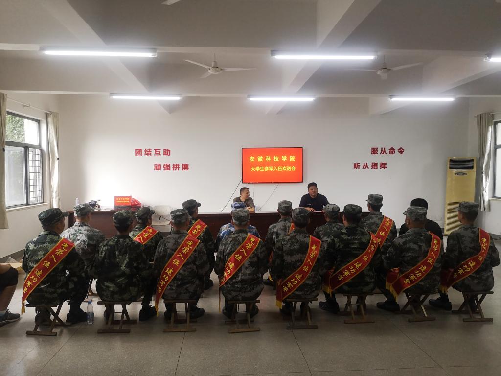 携笔从戎,青春无悔,又是一年金秋硕果时,9月17日下午,学校在空军某大学会议室举行2021年秋季大学生新兵入伍欢送会。校人武部副部长邵传雷、蚌山区人武部相关领导及我校18名参军入伍学生参加了欢送会。会议由邵传雷主持。