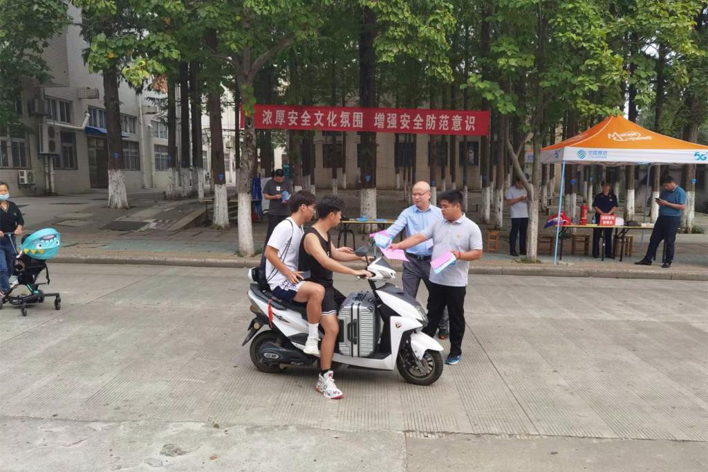 下午3:30时许,保卫处党支部全体党员佩戴党员徽章来到活动现场。活动现场的桌子上早已整齐地摆放着防范恐怖袭击、安全文明行车、防范电信网络诈骗、消防安全宣传材料、消防器材和宣传展板。在小树林上悬挂印有“浓厚安全文化氛围 增强安全防范意识”字样的鲜红的横幅。党员们拿着各种宣传单,在各个路口向路过的学生发放材料,一遍遍地向学生们宣传校园安全及增强安全防范意识的重要性。同学们拿着宣传单仔细地翻看,并对工作人员表示感谢。消防VR通过可视化场景向同学们“真实”模拟了面对火灾如何逃生以及电动车着火如何扑救等场景。