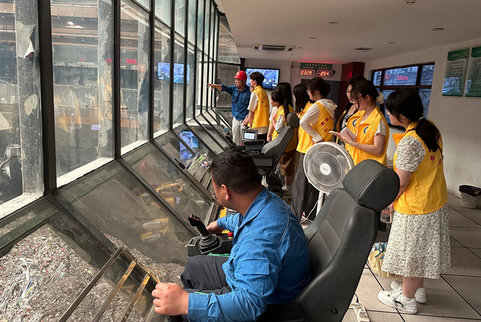 在蚌埠市绿色动力再生能源有限公司安环监管部朱麟经理的带领下,团员们依次参观了生活垃圾无害化、资源化、减量化处理厂和生活垃圾焚烧实时监控室,系统学习了垃圾回收的处置方式,以及垃圾焚烧发电、渗沥液净化养鱼和浇花、残渣加工成砖等相关知识。团员们纷纷表示将在今后的生活中主动践行垃圾分类,参与到节能、节水、节粮和环境保护的实践中去。