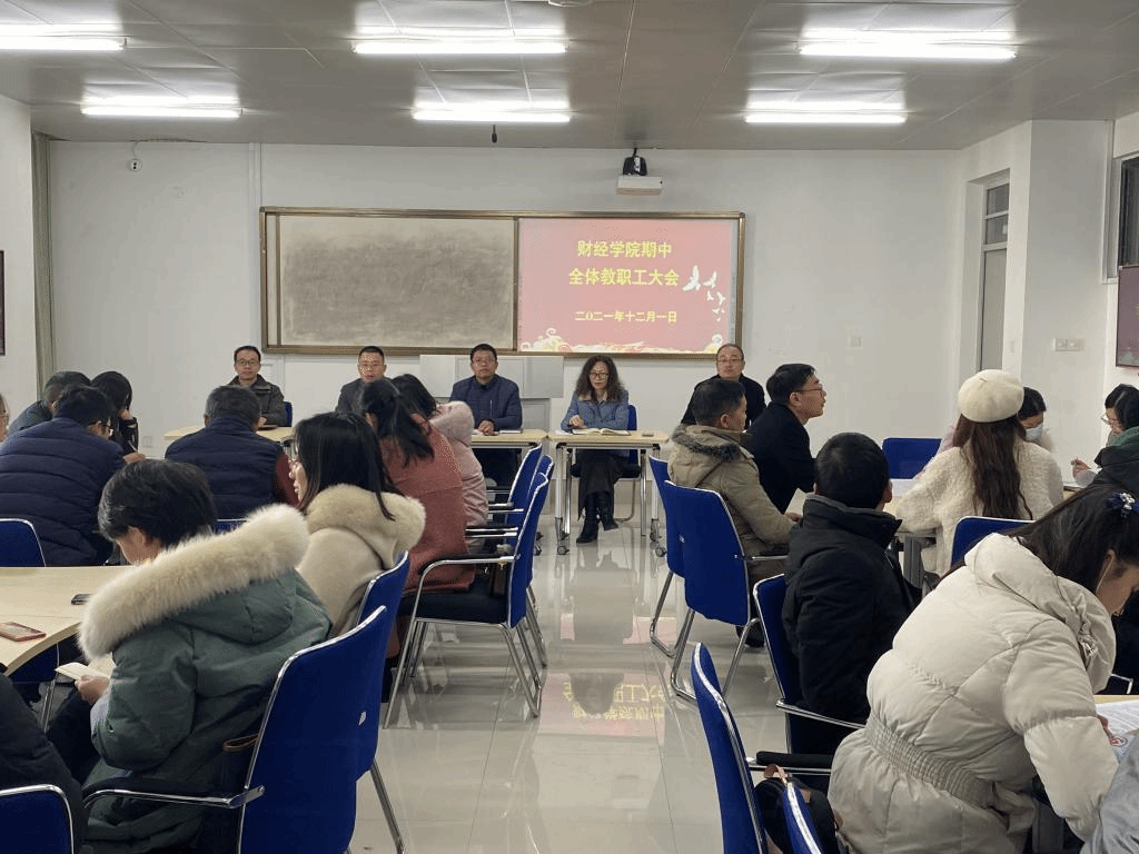 12月1日,财经学院在龙湖校区致知楼B306教室召开全体教职工大会,学院党政领导及全体教职工参加会议。会议由党委书记杜小明主持。