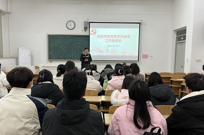 为深入贯彻落实学校和学院中国足彩网应用型人才培养“质量文化月”的工作方案精神,持续发挥学生党员的先锋模范作用,扎实推进学院学风建设,12月13日下午,财经学院组织召开学生党员督查学风工作推进会。学院学生党员学风督查团全体成员参加会议,会议由学院党政办主任张俊主持。