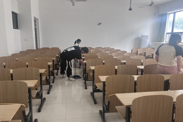此次活动对教学楼教室进行了一次全面的卫生打扫,志愿者们以“不怕苦、不怕累、不怕脏”的精神对各种卫生死角和积存垃圾进行清理,包括地面清洁、桌椅擦拭、黑板擦洗;整理桌椅,确保桌椅排列整齐,方便同学们就座;清空教室杂物,保持教室整洁。同时,志愿者们进行环保知识的宣传,引导同学们爱护公共环境。在整个清扫整理的过程中,志愿者们各司其职,充分展现了热情向上、吃苦耐劳的奉献精神和全心全意服务身边同学的精神风貌 。
