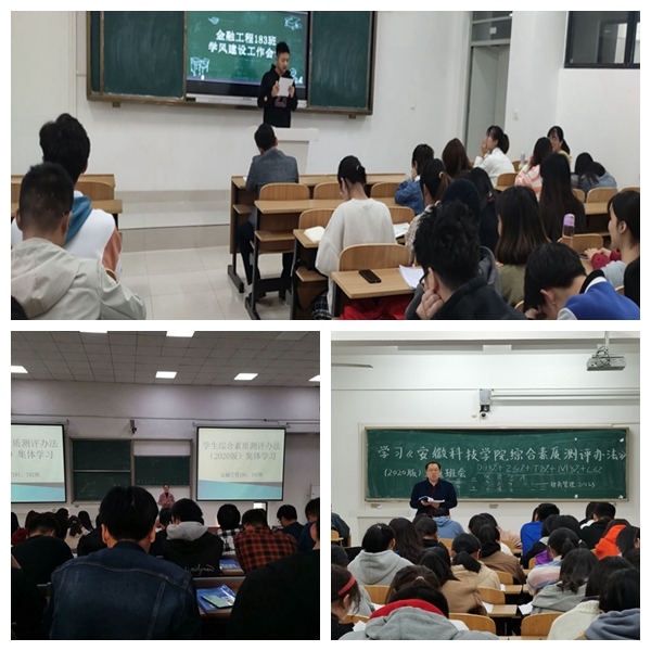 为进一步促进大学生德智体美劳全面发展和健康成长成才,财经学院以班级为单位组织开展《安徽科技学院学生综合素质测评办法》(2020版)学习宣传。