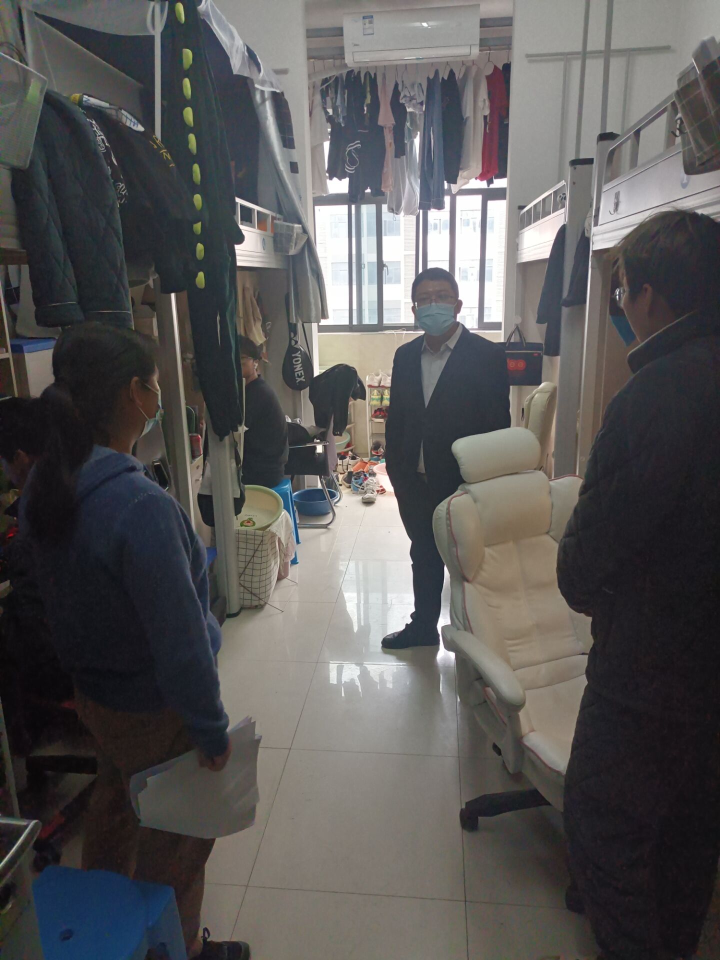 走访过程中,老师与同学们亲切交谈,宣讲学校疫情防控最新动态和最新要求,提醒同学们在疫情防控常态化的背景下保持宿舍干净卫生,做好个人卫生,强化安全防护的重要性。走访中,老师还解读了寝室违规用电、私拉电线等反面案例,强调学生宿舍内的“六个严禁”,引导学生们深刻认识违反宿舍安全管理规定的严重后果,树立遵纪守法自觉性。