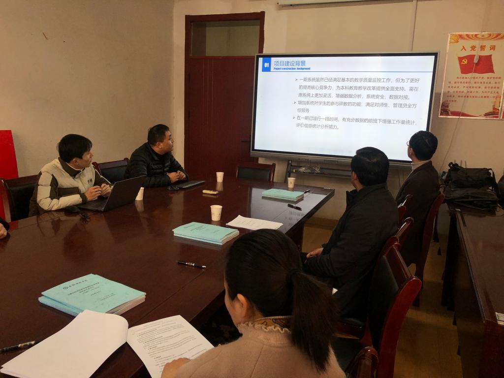 2021年12月2日下午,督导考核办公室在教务处会议室组织开展安徽科技学院教学质量监控管理系统优化升级项目验收工作。参加验收会议的有教务处、财务处、网络与信息技术中心、国有资产管理处、督导考核办公室和项目实施方的相关技术人员,验收会由督导考核办公室主任程斌主持。