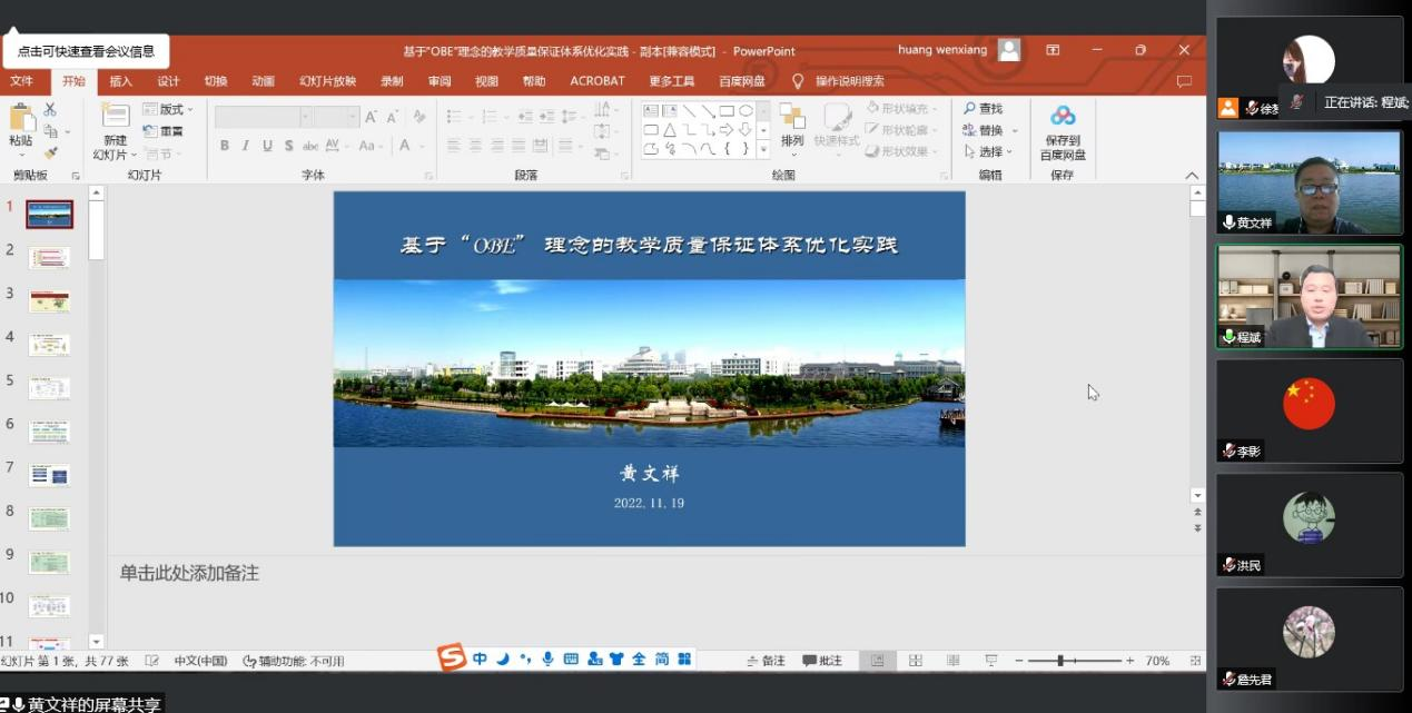 会议的第一阶段,由常熟理工学院教学质量管理处黄文祥教授作培训报告。黄文祥围绕“基于“OBE”理念的教学质量保证体系优化实践”,主要从教学质量保证体系构建、教学质量监控工作内容、质量保证体系优化思考与实践等三个方面进行了系统阐述,既有对指标内涵的深入解读,也有对工作重点任务的梳理分析,既有理论的广度和深度,又有实践的经验与启示,让与会者受益匪浅。报告后,黄文祥还与与会人员代表,就质量保障建设的热点和难点问题,进行了专门指导。