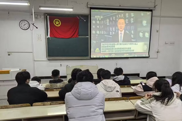 3月19日,动医221班在求A102教室围绕“党的创新理论——聚焦全国两会”主题举行主题团日活动。团支书李莹莹与同学蒋世成、左伟先后围绕习近平新时代中国特色社会主义思想、全国两会精神及其最新实践成果作了分享交流。活动最后,李莹莹号召同学们积极投身社会实践,以奋发向上的姿态迎接时代挑战,为实现中华民族伟大复兴贡献智慧和力量。
