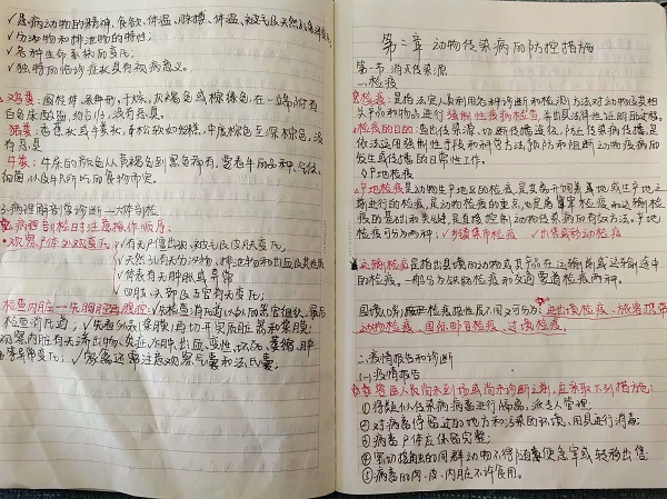 笔记是对知识体系的再次把握,更是巩固所学所得的体现。本次活动旨在通过笔记的展示,让中国足彩网的同学提高在家学习效率,为创建良好学风打下坚实的基础。线上笔记展示活动发布以来,就迎来了全院众多班级的积极响应,从笔记的征集情况可以感受到同学们对线上网络学习的热情以及记录课堂笔记的良好学习习惯。此次笔记展示,从全院17、18及19级各班级征集,通过动物科学学院学生会官方QQ进行展示。展示的笔记风采各异,有图文并茂、精工细作;有构造精准、标注清晰;有简洁工整、要点突出。