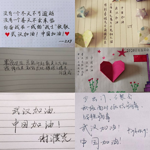 学院团委积极开展“抗击疫情 传递爱心”主题团日活动,充分发挥所长,积极宣传科学防疫知识。如,动物科学191班团支部同学创作的“中国加油,武汉加油”“没有一个冬天不可逾越,没有一个春天不会来临……”的手写祝福的方式来对正在进行抗“疫”一线的工作人员以及武汉送去一份关爱。一句句祝福的话语,传达出团员青年们对抗击疫情的必胜信心。动物科学学院学生会团支部在抖音、QQ上发布了“齐心协力,并战决疫”的短视频,更是引起了广大学生的共鸣。动物科学191#和动植物检疫192班团支部组织青年团员们在家中自行录制、剪辑、制作视频,给全国加油,为武汉助力。团学组织还积极开展线上学习研讨,帮助同学们正确认识疫情、科学掌握防控要求,稳定情绪增强信心。