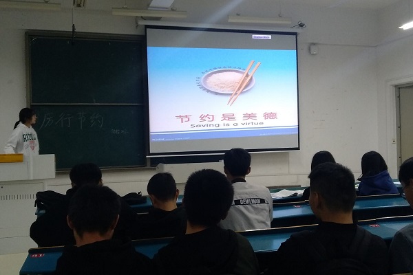 动物医学173团支部通过向团员青年们讲述节约小故事,诵读勤俭名言警句,来告诫同学们节约粮食的重要性,从而营造“节约光荣,浪费可耻”良好氛围。动物科学181团支书刘莹在主题班会课上向全班学生发出倡议:吃多少,盛多少,拒绝浪费,树立“浪费可耻,节约光荣”的理念,倡导节约文化,广泛宣传节约理念,从自身做起,得到了班级同学的一致赞同。
