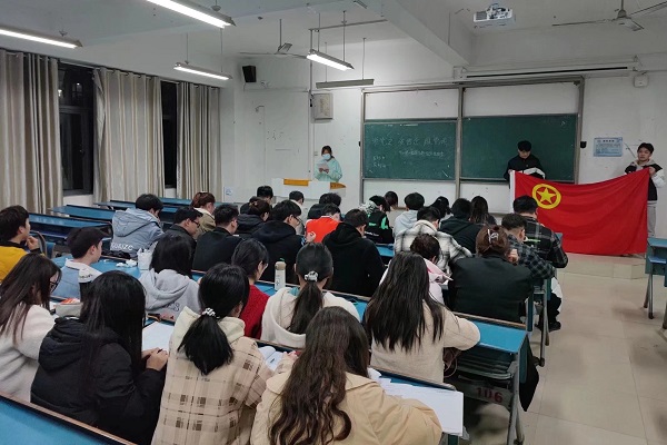 各团支部在组织生活会前认真组织全体团员集中学习习近平总书记在庆祝中国共产党成立100周年大会上的重要讲话,党的十九届六中全会精神和《中国共产主义青年团团员教育管理工作条例(试行)》等。在动物科学203班团支部组织生活会中,班级团支部书记付世婷汇报团支部今年开展党史学习,特别是学习习近平总书记“七—”重要讲话精神情况和组织生活会准备情况,她说到,一百年来,党领导人民浴血奋战、百折不挠,创造了新民主主义革命的伟大成就;自力更生、发愤图强,创造了社会主义革命和建设的伟大成就;解放思想、锐意进取,创造了改革开放和社会主义现代化建设的伟大成就;自信自强、守正创新,创造了新时代中国特色社会主义的伟大成就。党和人民百年奋斗,书写了中华民族几千年历史上最恢宏的史诗,随后团支部委员、其他团员依次发言,其他团员对其进行评议,肯定成绩、指出不足。学院各团支部按照学院团委要求还开展团员先进性评价民主测评投票,重温入团誓词。