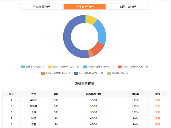 活动期间,各班级按照学院保密知识竞赛活动的统一部署,层层动员、广泛组织学生参加。系统随机抽取50道题生成试卷,完成答题或规定时间结束后,自动生成成绩。