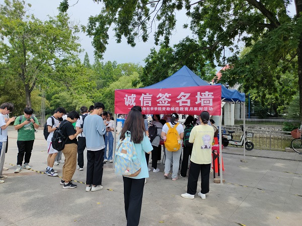 活动过程中,同学们积极询问活动有关事项。在工作人员的带领下,同学们了解了活动开展的意义,并在诚信签名墙上写下自己的名字。一笔一画不仅留下了同学们的名字,更在同学们的心中许下了坚守诚信的誓言。