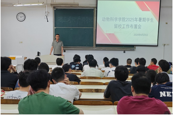 为做好暑期留校学生的教育、管理与服务工作,保障同学们的暑期学习、生活和工作有序进行,6月25日上午,动物科学学院于求知楼A座107室召开2025年暑期学生留校工作布置会。动物科学学院党委副书记汤帅,团委书记李焱、党政办公室副主任范雨梦,辅导员刘成义、王永芳及全体留校学生参加会议。会议由刘成义主持。