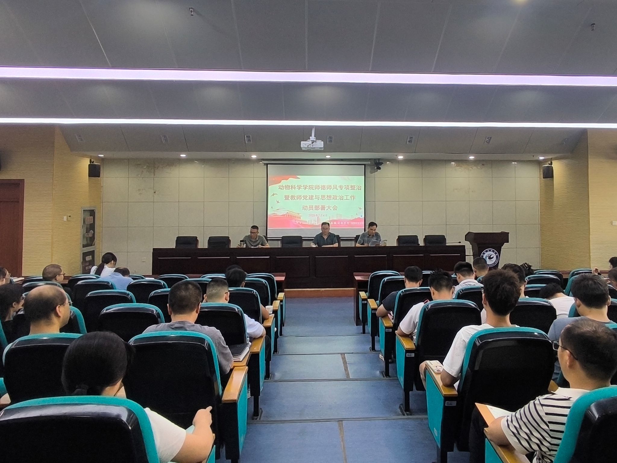 7月4日下午,动物科学学院在图书馆第一报告厅召开师德师风专项整治暨教师党建和思想政治工作动员部署大会,学院全体教职工参加会议,会议由学院党委书记甘宗平主持。