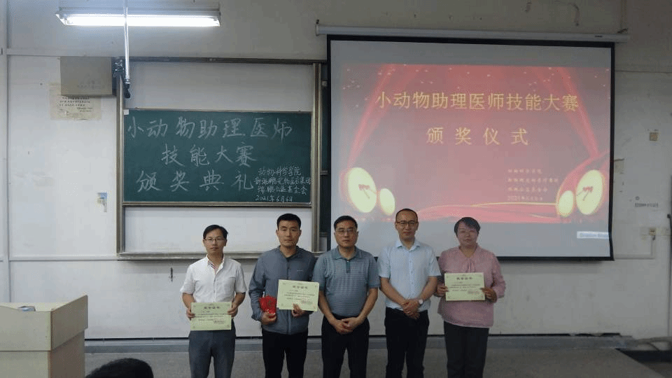 6月6日下午,动物科学学院在求知楼A106举行小动物助理医师技能大赛颁奖典礼,此次比赛由动物科学学院主办、瑞鹏公益基金会以及新瑞鹏宠物医疗集团重点支持。动物科学学院党委书记姚勇,动物医学实验室主任李静,新瑞鹏宠物医疗集团苏皖区总经理胡旺庭,新瑞鹏宠物医疗集团苏皖区招聘经理刘志远、马奔,指导老师赵磊、阮崇美出席典礼。获奖人员及学生会部分成员参加典礼。