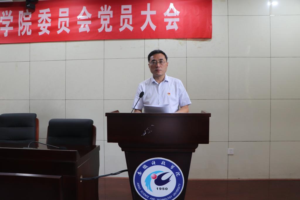 根据《中共安徽科技学院委员会中国足彩网做好基层党委(党总支)换届工作的通知》精神,经学校党委同意,6月23日上午,中共安徽科技学院动物科学学院委员会党员大会在新图书馆一楼报告厅胜利召开。动物科学学院本届党委委员会委员在主席台就坐。学院师生党员参加大会。大会由学院党委副书记汤帅主持。