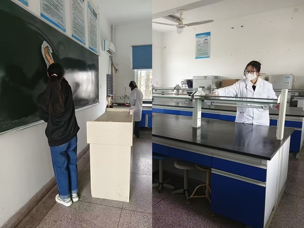 各班级通过人员分组和任务分配的方式对实验台面、仪器设备、地面、门窗等实验室环境和器材进行了全面清洁,并在宿舍楼、教学楼、兽医院、各班分管的青年林等场地有序开展了环境清扫活动,弘扬了无私奉献精神,夯实了校园文明根基。