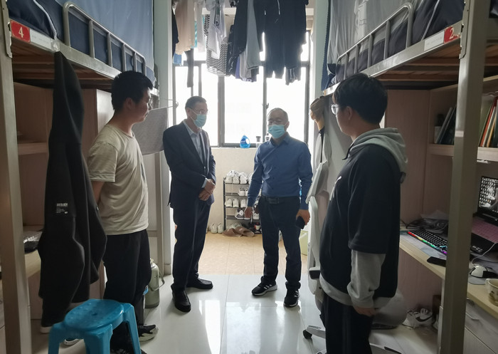 而后,学院党委书记骆海邦,党委副书记尚磊及全体辅导员以“回头看”形式,不打招呼对学生宿舍进行随机抽检。抽查期间,骆海邦细致询问学生对宿舍安全管理制度是否清楚,对学校的管理方式是否理解配合。要求大家增强安全防范意识,平时要严格落实各项安全管理规定,确保宿舍安全。领导关切的询问学生的衣食住行、学习等各方面的情况,同时叮嘱大家,夏季来临,要加强卫生防病,保持宿舍卫生整洁,物品摆放合理有序;日常作息有规律,饮食要得当,少聚餐,不酗酒,自觉遵守公寓相关安全守则。