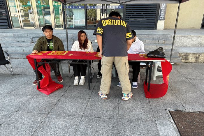 本次活动面向龙湖校区所有师生。活动前期,志愿者通过线上渠道宣传本次活动。活动期间,学生们纷纷拿着塑料瓶和快递纸盒来到签名墙前,在“绿色校园,“废”物焕新”签字横幅上签下自己的名字,调动大家积极性,从身边小事做起,建设绿色校园!