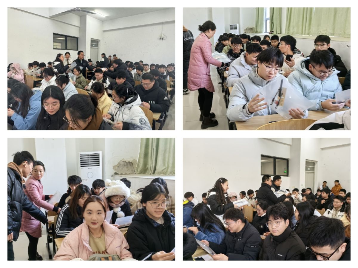 同时,尚磊还强调了诚信考试的重要性,希望大家能够保持诚实守信的品质,珍惜考试机会,用自己的实力证明自己的价值。大会的最后,各毕业班辅导员为考研学子发放了助考文具,这些文具代表着学院对同学们的关怀和支持,希望它们能在关键时刻为同学们带来好运和力量。