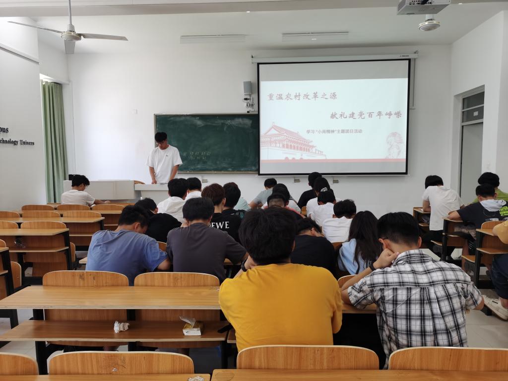 电气与电子工程学院团委高度重视、精心组织、认真部署,确保了本次会议顺利进行。会上,毕玉龙和同学们一起重温了中国改革历程。1978年,凤阳县小岗村18位农民立下生死状,按下红手印,签订“大包干”契约,将土地承包到户,拉开了中国农村改革的大幕,中国共产党领导亿万人民开启了“改革开放”这场决定中国前途命运的伟大变革,中国特色社会主义由此开启了伟大的实践征程。余昌胜向大家详细讲解了“敢于创造、敢于担当、敢于奋斗”的小岗精神。
