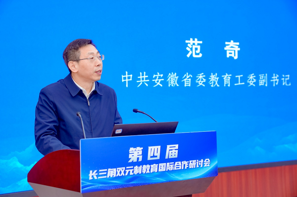 12月26日至28日,由安徽省教育厅、上海市教育委员会、江苏省教育厅、浙江省教育厅共同主办的第四届长三角双元制教育国际合作研讨会在合肥大学召开。中共安徽省委教育工委副书记范奇出席开幕式并致辞。三省一市教育主管部门与71所应用型本科院校、高等职业院校、研究院、企业共130多名代表参加研讨会。我校党委委员、副院长赵伟峰和国际交流与合作处负责人应邀参会。