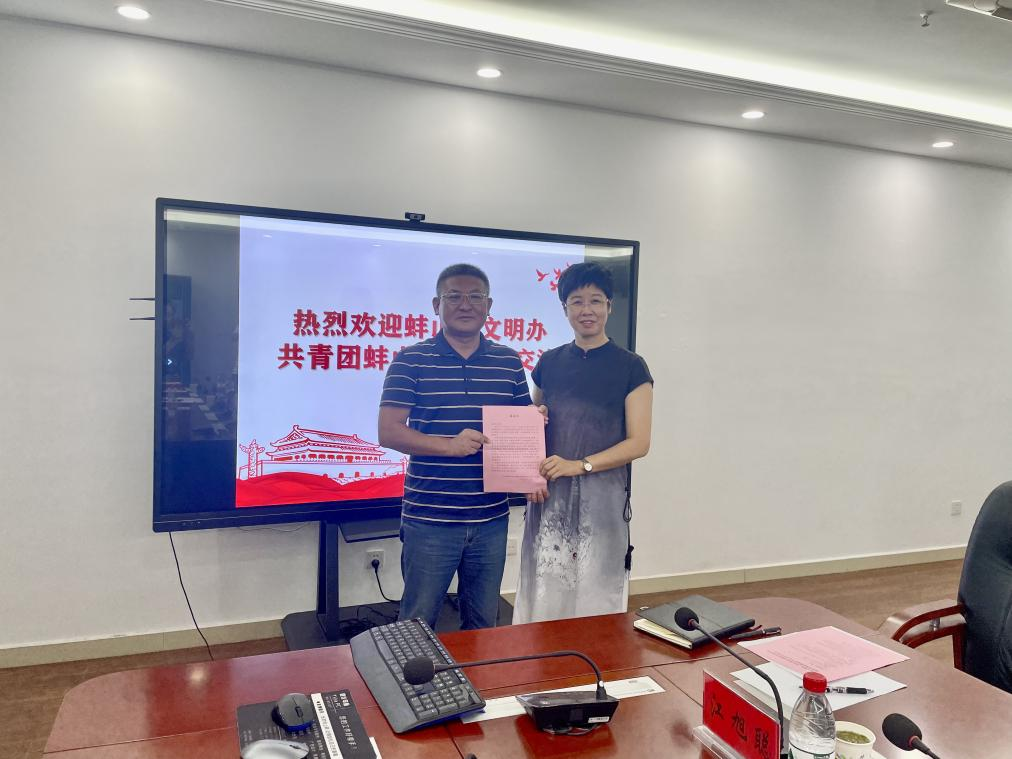 蚌山区文明办、团蚌山区委向我校赠送感谢信