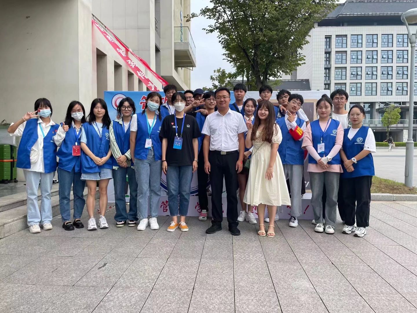 身着蓝色志愿者服装的学长学姐们接过新生手中的行李,背着大包小包带着新同学前往入学信息核验点。