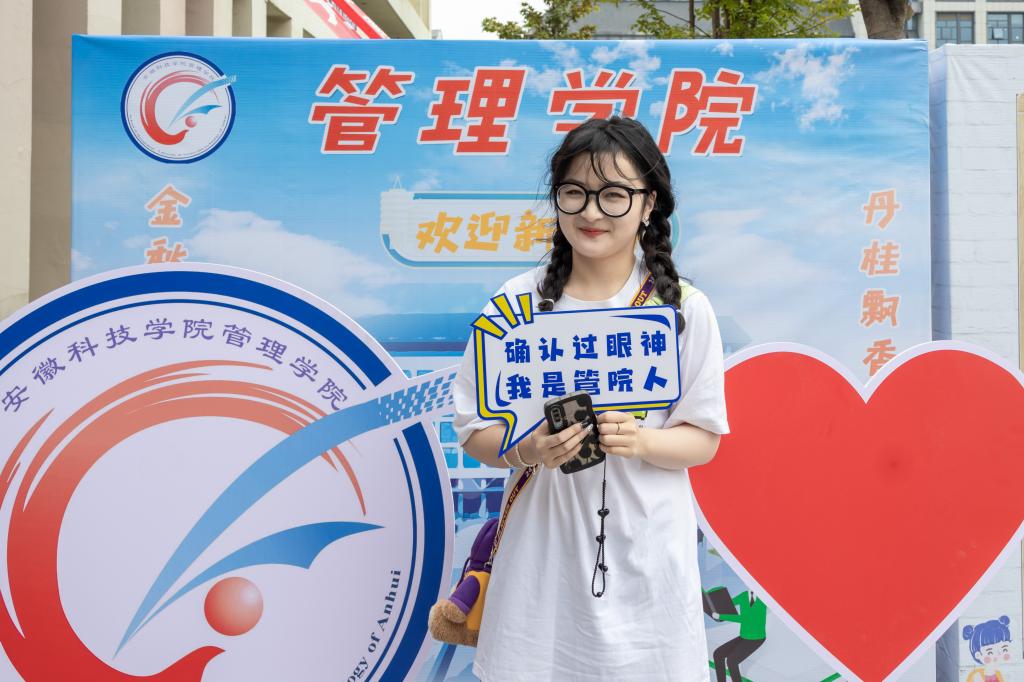 在管理学院入学报到信息核验点,竖立着一块色彩斑斓的管理学院留影背景墙——“我与院徽合张影”。学院特别为每一位报到的新生拍下开学的第一张照片。随着一声“咔嚓”轻响,美丽的安科校园,未来将活跃着中国足彩网的年轻身影,他们笑得灿烂,朝气蓬勃。
