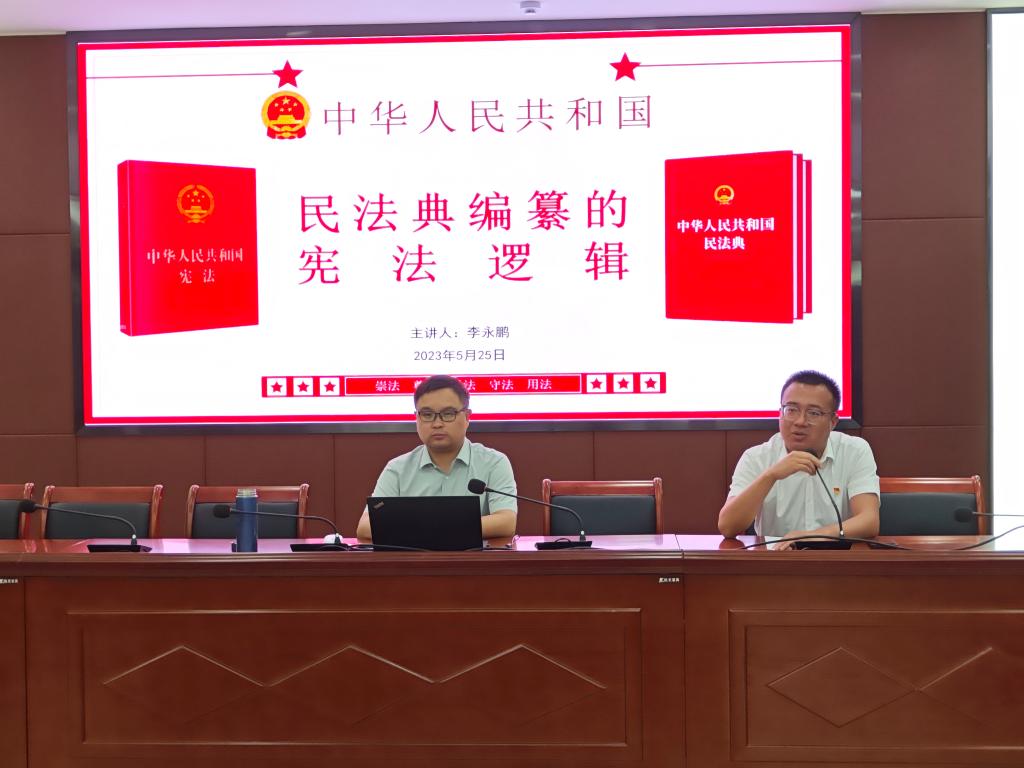 5月25日晚,管理学院团委开展法治教育专题团课,围绕《民法典编纂的宪法逻辑》开展主题宣讲。校法治办法治科科长、管理学院党政办公室主任李永鹏应邀作团课宣讲,团课由团委副书记江旭聪主持。