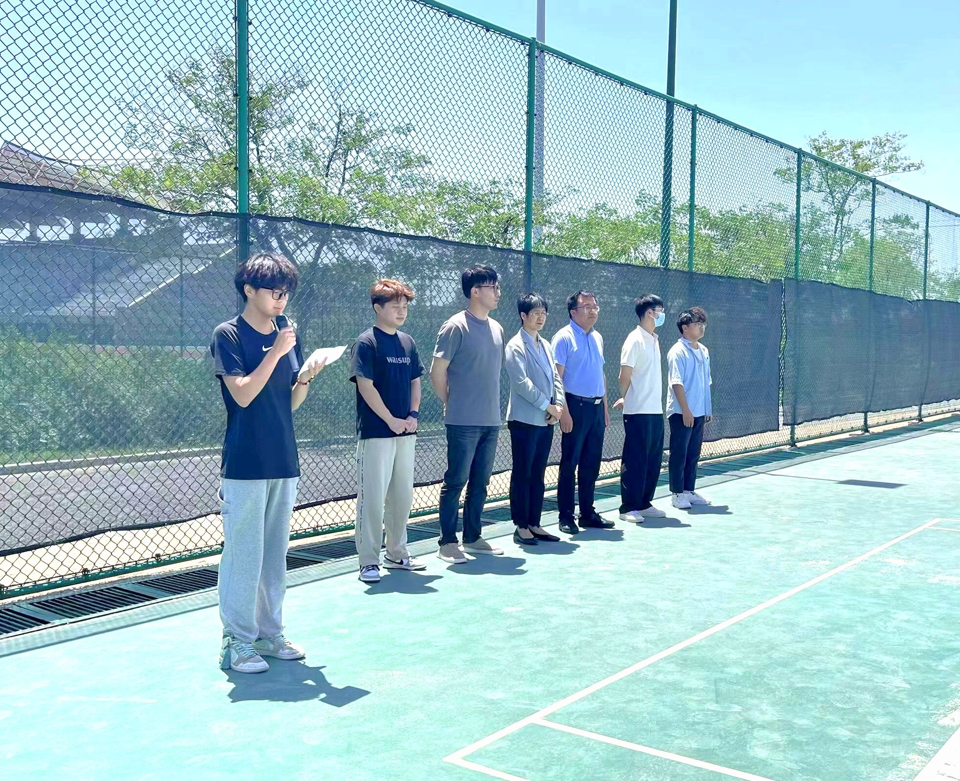 团委副书记江旭聪致辞,他表示,生命在于运动,体育改变生活。开展此次比赛是践行“绿色、健康、低碳、高雅”生活方式和发扬“更高、更快、更强、更团结”体育精神的生动体现,更是响应落实习近平总书记中国足彩网推动全民健身和全民健康深度融合重要讲话的具体行动。希望同学们以球会友,收获友谊、收获美好心情、收获健康体魄。