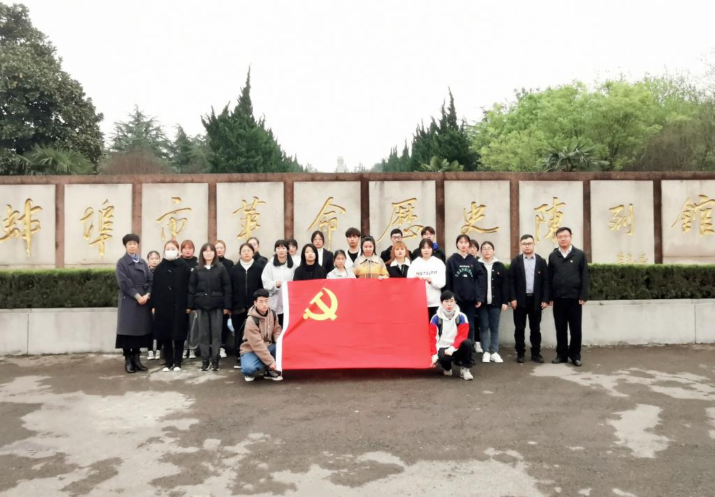 在革命历史陈列馆,大家在一幅幅图片,一份份史料,一件件实物前驻足,认真观看学习,重温党的辉煌历程。“桃花红雨英雄血,碧海丹霞志士心”,在了解到许多革命烈士为实现民族独立和人民解放而献出了宝贵的生命之后,每一名师生党员都肃然起敬。