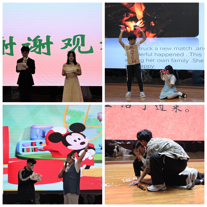 比赛前,参赛选手们做好了充足的准备,服饰道具等一应俱全。赛中,各位评委根据布景道具、演技、言语发音流利、选材内容等进行评分。台上选手风格迥异,沉着有力、蓄势待发;台下观众全神贯注,斗志昂扬、感慨万千。在这期间,参赛选手们给观众带来了《白雪公主》、《夏洛特烦恼》、《米奇妙妙屋》等精彩的英语话剧表演。其中《白雪公主》表演组默契的舞台配合,精彩的表演,性别反串更是吸引了大家的目光,全场观众激动不已;《后妈茶话会》表演组的表演形式新颖,敢于突破自我,通过歌唱的方式把各个角色独特的性格展现得淋漓尽致,他们流利的英语台词和良好的舞台表现力都为这个话剧增添了色彩。《国王的新衣》表演组用幽默的动作与和谐的英语口语展示了皇帝的荒谬,结尾令人大笑,也引人深思。参赛同学们结合外国经典文本与英语听说读写能力,充分展现了英语学习的社会性和实用性。同学们用精彩的表演,为在座师生带来了一场生动有趣的别样体验。