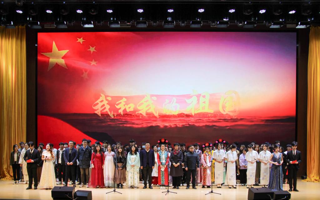 晚会最后,与会老师与全体演职人员共同唱响《我和我的祖国》,用歌声歌颂伟大的党,歌颂伟大的祖国,歌颂伟大的时代。(特约通讯员:江旭聪摄影:张成伟 张锦睿 苏海 谭蓉蓉 吴凡 审核:陶漫)