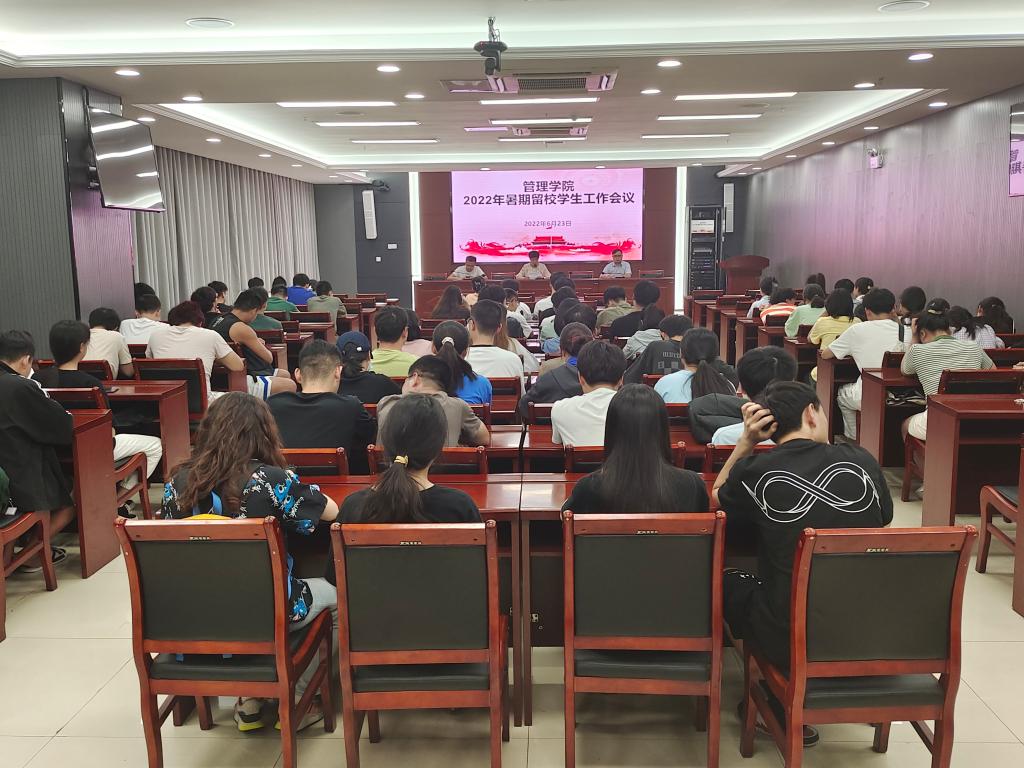 6月23日下午,管理学院在龙湖校区西辅楼111会议室召开2022年暑期留校学生工作会议,学院党委副书记陶漫及党政办公室主任李永鹏出席会议,全体留校学生参加会议,会议由院团委副书记江旭聪主持。