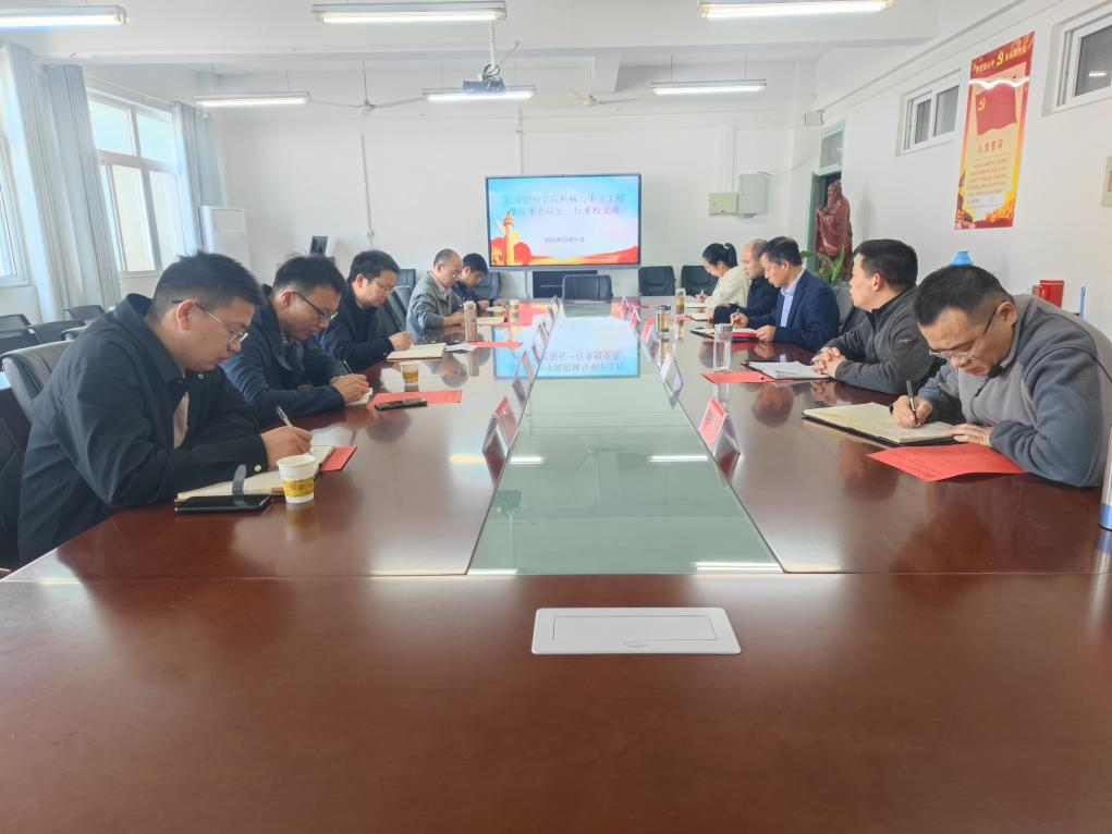 为推进高峰学科建设与高质量人才培养,3月31日上午,宿州学院机械与电子工程学院院长朱光、副院长刘从虎等一行来校与机械工程学院对接交流,开展高峰学科建设、实验室建设、人才培养和科研工作经验座谈交流。会议由机械工程学院院长陈丰主持,副院长张华和乔印虎、机械设计制造工程系主任缑瑞宾博士和科研秘书方梅博士参加。