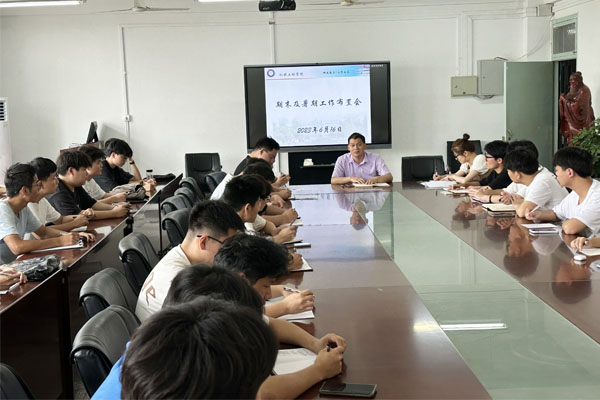 2023年6月16日中午,机械工程学院党委副书记张程在会议室主持召开了期末及暑期学生工作布置会,辅导员孟凡生、张立亮、蔡炜煜和全体非毕业班班长参加会议。