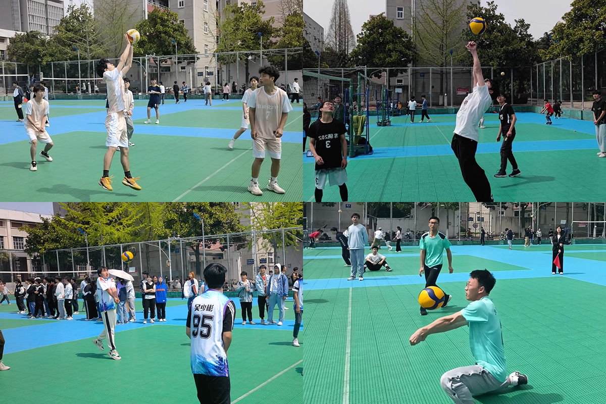 比赛中排球运动员们在赛场上充分发扬顽强拼搏、众志成城、坚持到底、永不言败的体育精神。他们在赛场上为救球竭尽全力、甚至冲出场外。面对失利,也毫不气馁、相互鼓励,为每一个好球击节叫好、相互拥抱。场外同学们“加油、加油”的呐喊声此起彼伏,响彻整个校园。