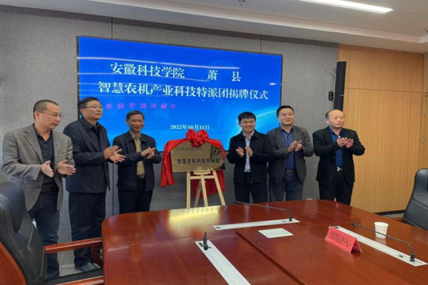 随后“安徽科技学院·萧县智慧农机产业科技特派团”揭牌仪式在萧县政务中心举行。萧县副县长胡先锋主持活动。