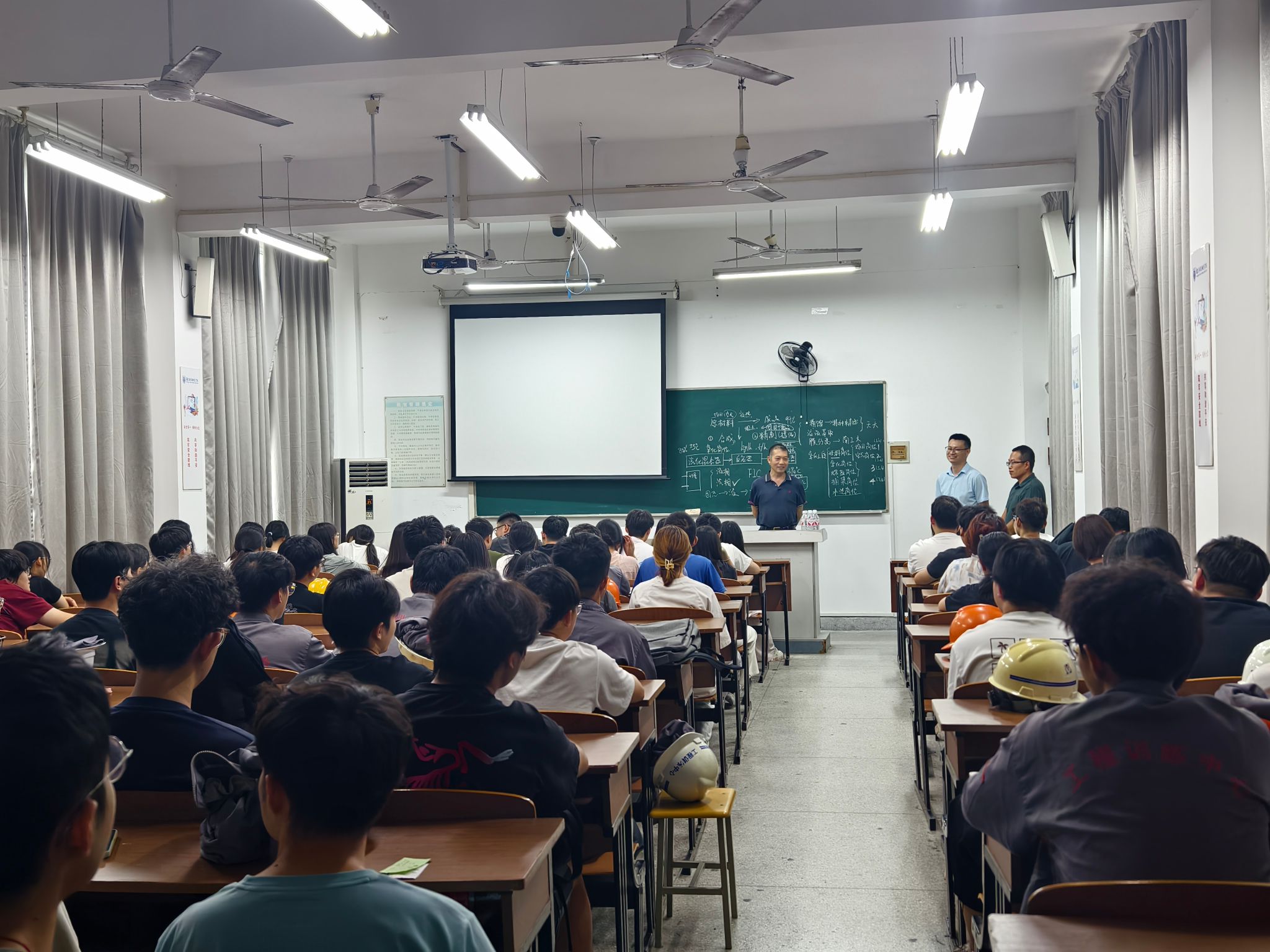 黄树桥一行深入实习场地,在实训车间、实验室等区域仔细了解了实训设备配置、操作流程规范及学生实操情况,并与实训中心指导教师亲切交流,详细询问了学生实习任务安排、技能培养重点及阶段性学习成果。在实习学生见面会上,黄树桥代表学院向大家表示慰问,鼓励大家要积极适应实习环境,珍惜实践机会,在实操中积累经验、提升专业技能,为后续专业学习和职业发展奠定基础。叶龙强重点强调了实习期间的安全问题,要求学生务必严格遵守实习单位安全管理规定,规范操作实训设备,同时注意人身、财产及饮食安全,遇到问题及时与实习指导教师沟通。