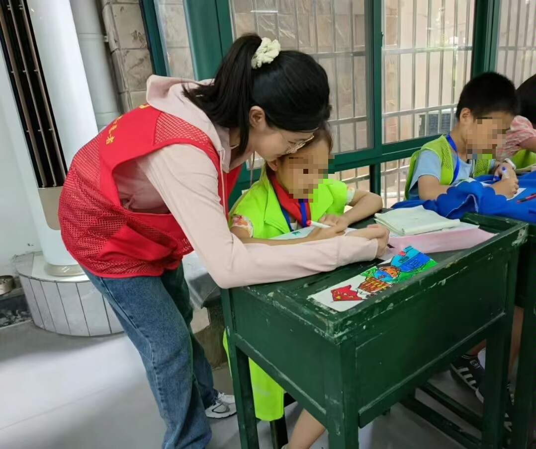 团队成员同时积极参与到村委会组建的暑期课堂中,帮助留守儿童解决在学习中、生活上和心理上面临的困难,陪小朋友们一起做解压小游戏、绘画等,认真倾听他们的梦想,同时给予鼓励。