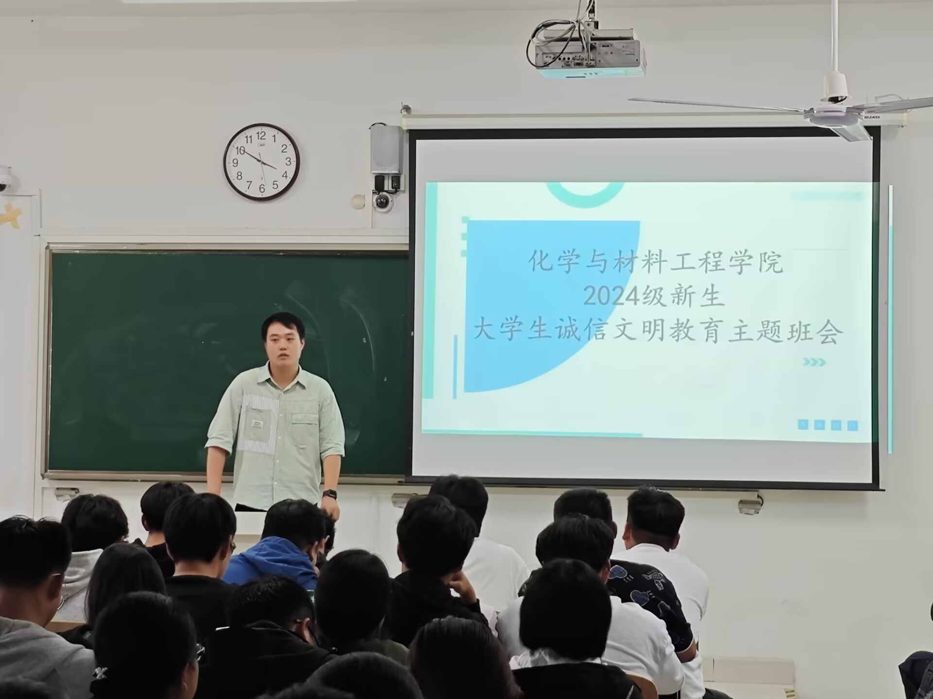 为培养学生的诚信意识和文明素养,化学与材料工程学院于10月30日举办了“诚信文明”主题辅导报告。学院专职辅导员宇春虎主讲。