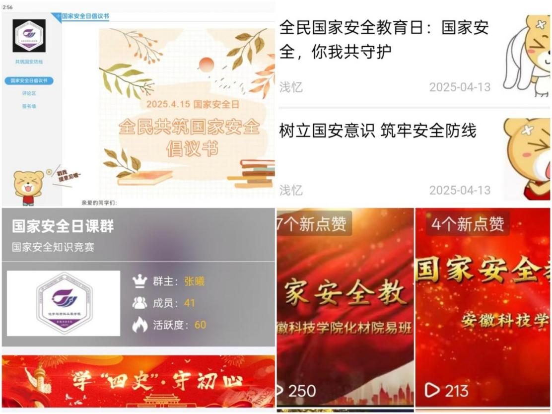 学院依托易班平台,推出国家安全教育系列推文,同时在轻应用上线“共筑国安防线”互动模块,在学院易班官方抖音账号发布国家安全主题短视频,还举办易班优课知识竞赛等一系列线上活动,涵盖了国家安全知识科普、典型案例分析、法律法规解读等内容,吸引了众多同学参与。据数据统计,线上易班活动参与人次高达1000+。