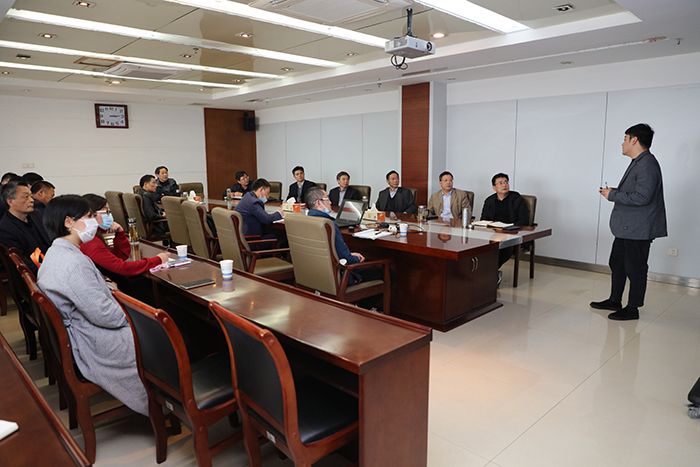 设计人员详细汇报了龙湖校区信息中心装修深化设计方案,重点介绍了项目设计理念、思路、定位,分层布局功能规划图,展示了各楼层及重点位置的效果图,以及导引标示识别系统、文化背景墙设计方案等。
