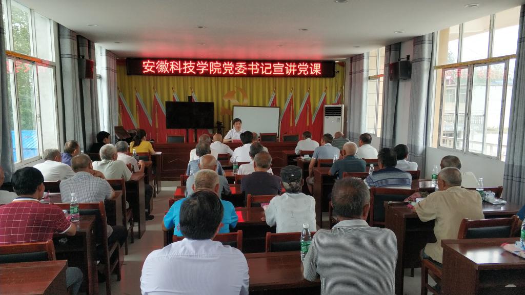 在王桥村党员活动中心,蒋德勤为村全体党员宣讲一次精彩党课。蒋德勤介绍了我校办学历史、办学特色、师资结构、区域位置、发展规划等基本情况,回顾了我校自2014年以来对王桥村定点帮扶工作开展情况和王桥村脱贫攻坚所取得的成效,系统地解读了国家脱贫攻坚的总体目标和基本方略,介绍了脱贫攻坚的制度体系建设情况和十八大以来国家和我省脱贫攻坚工作所取得的成绩。他指出,中国共产党领导是中国特色社会主义最本质的特征,中国共产党作为马克思主义政党,坚持以人民为中心,始终把为中国人民谋幸福、为中华民族谋复兴作为自己的初心和使命,除了国家、民族、人民的利益,没有任何自己的特殊利益。他希望广大党员继续提振决战决胜脱贫攻坚的信心和决心,用实际行动促进脱贫攻坚和乡村振兴的有效衔接。同时,他表示安徽科技学院将一如既往地支持王桥村的发展,为建成“产业兴旺、生态宜居、乡风文明、治理有效、生活富裕”的新王桥贡献力量。