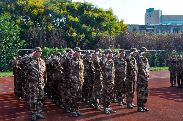 标准的军姿彰显着一丝不苟的态度,每一个动作干净利落,每一句口号响彻天际,每一次落脚铿锵有力。