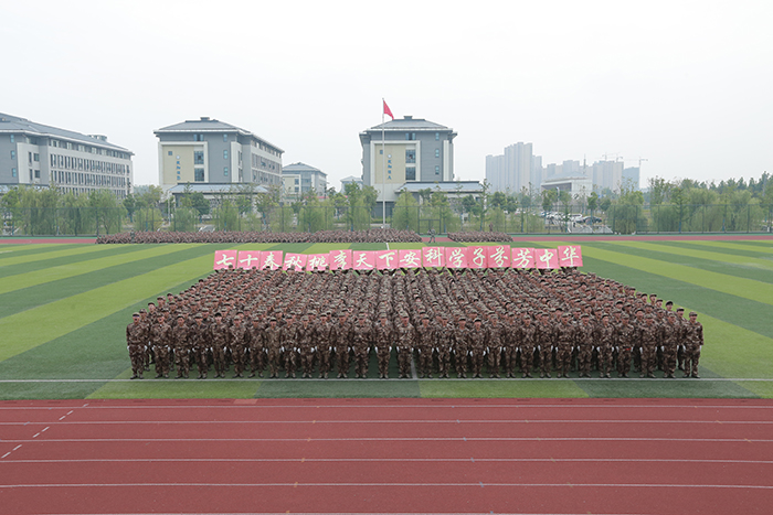 应急棍术、格斗术、军体拳、长拳等特色方阵表演刚劲有力、气势磅礴,展现了安科学子的飒爽英姿。在队列表演中,参训学员摆出的 “1950”“2020”“70”等图案表达了对学校的热爱、对大学生活的向往与期待以及对安科七十华诞的祝福,赢得现场领导和师生的阵阵掌声。